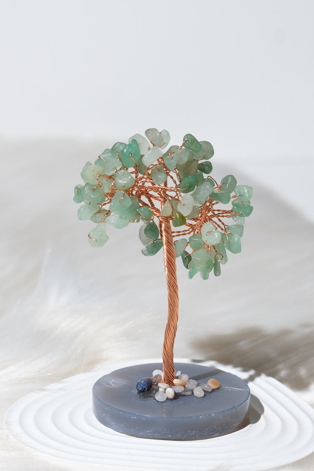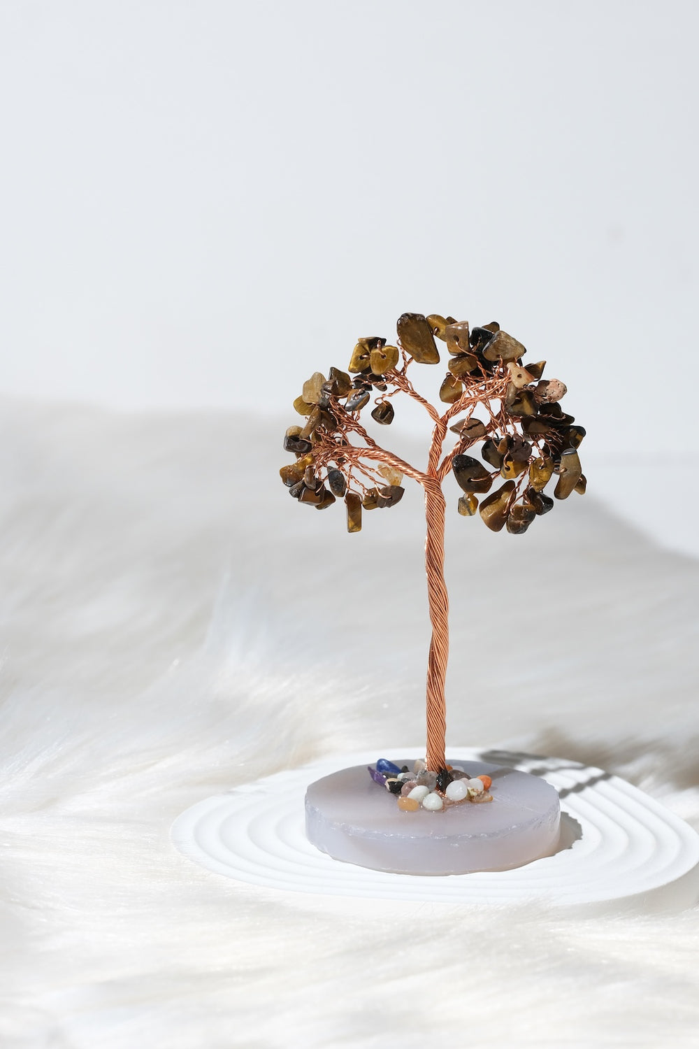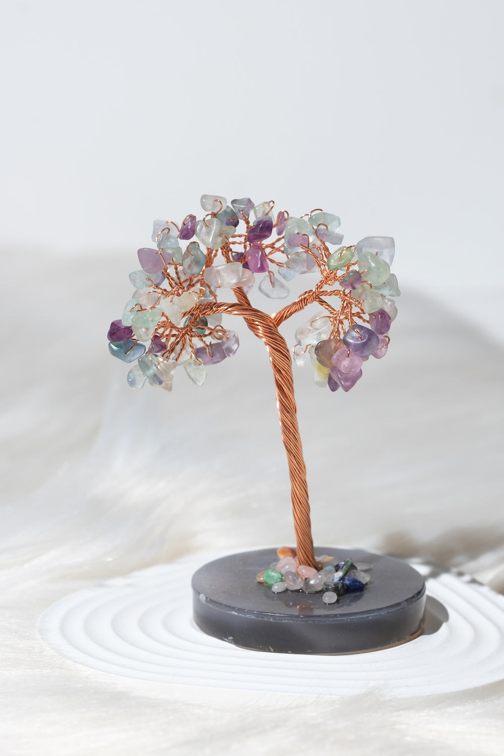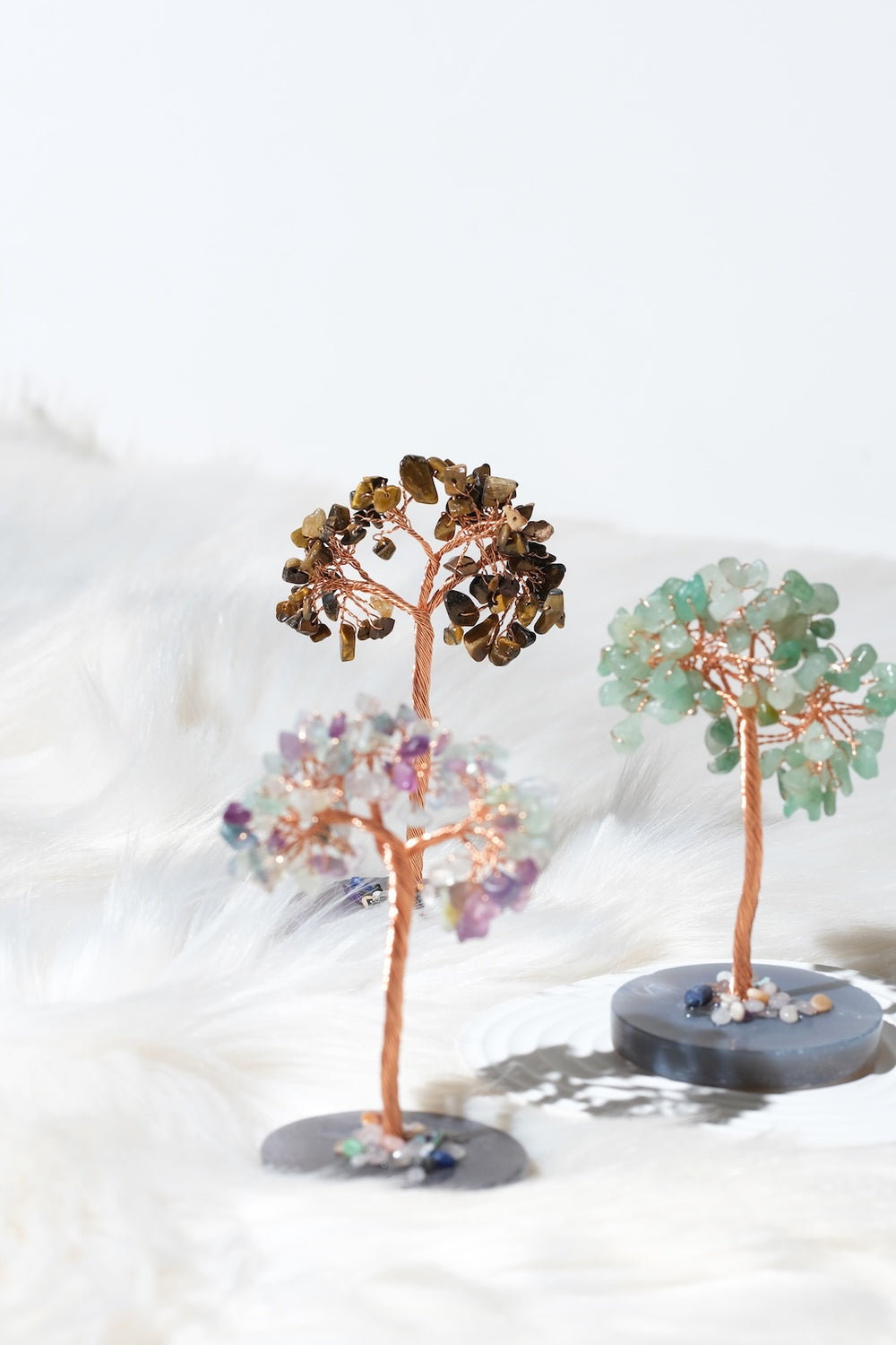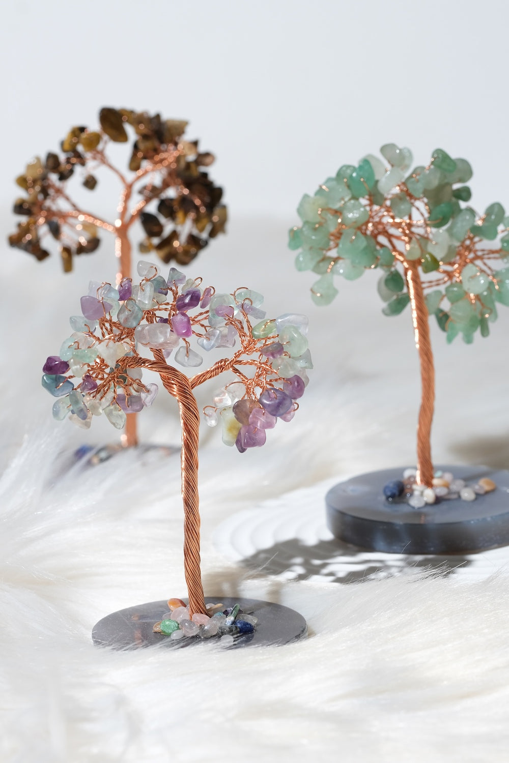 Ağaç üzerinde kullanılan taş varyasyonlarına göre, ürünün yaydığı sembolik anlam ve enerji teması değişiklik gösterebilir. Pembe kuvars yapraklı bir ağaç daha çok sevgi, özşefkat ve ilişkiler temasını desteklerken; ametist ağırlıklı bir ağaç dinginlik, odaklanma ve arınma atmosferiyle uyum sağlar. Sitrin ve pirit gibi taşların yer aldığı ağaçlar bolluk, bereket ve özgüven odaklı niyetler için tercih edilebilir. Siyah turmalin, obsidyen veya hematit içeren kombinasyonlar ise topraklanma, koruma ve denge arayanlar için güçlü bir seçenek sunar. Farklı taşların bir arada kullanıldığı karma ağaçlarda ise; sevgi, bolluk, koruma ve denge gibi birden fazla temayı aynı obje üzerinde sembolize eden zengin bir enerji paleti oluşur. Taş seçiminizi, hem estetik beğeninize hem de yaşam alanınızda hissetmek istediğiniz etkiye göre yapabilirsiniz.