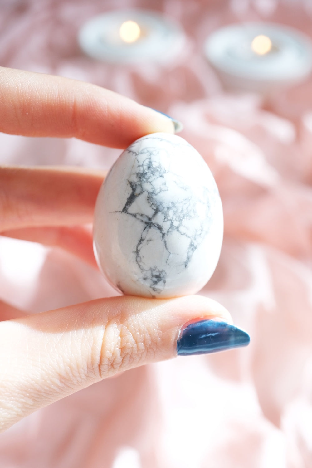 Havlit Yumurta Doğaltaş, sakin ve yumuşak beyaz tonlarıyla hem yaşam alanına zarif bir dokunuş katan hem de huzurlu bir atmosfer yaratmaya yardımcı olan özel bir doğal taş objedir. Eldeki pürüzsüz yumurta formu, taşı kullanırken rahat bir kavrama ve meditasyon esnasında konforlu bir deneyim sunar. Dekoratif olarak rafta, çalışma masasında ya da başucunda konumlandığında, minimal ve şık görünümüyle kolayca uyum sağlar. Doğal damar desenleri sayesinde her bir parça kendine özgü bir karakter taşır ve tekil bir obje olarak öne çıkar. Hem kendi ritüellerini zenginleştirmek isteyenler hem de sevdiklerine anlamlı ve estetik bir hediye arayanlar için zamansız bir seçenektir.