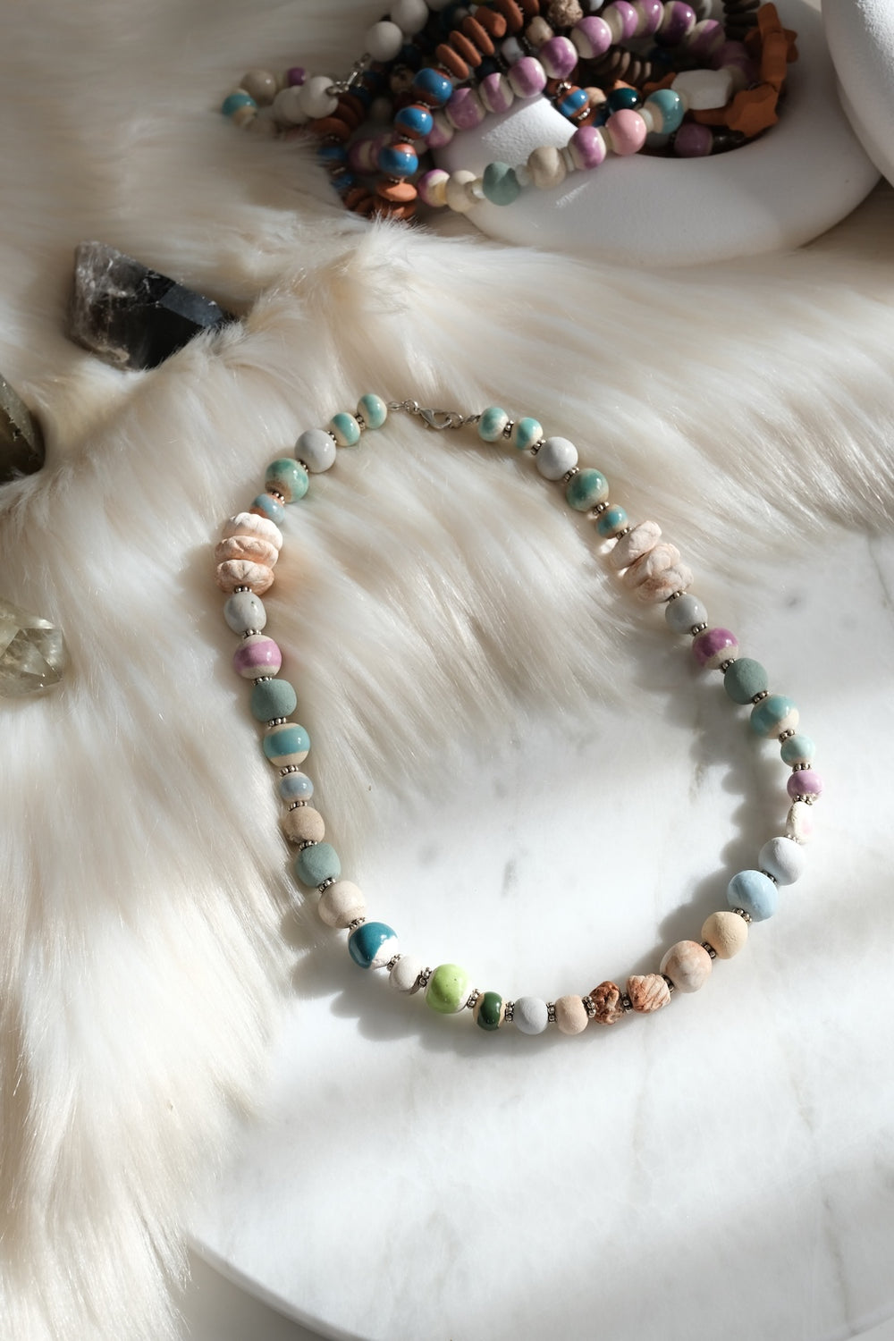 Pozen Boncuk Toprak Tasarım Kolye - II, doğadan ilham alan renk paleti ve zarif boncuk dizilimiyle stiline sıcak ve samimi bir dokunuş katmak isteyenler için tasarlandı. Günlük kombinlerden özel buluşmalara kadar pek çok tarza uyum sağlayan bu kolye, toprak tonlarının huzurlu enerjisini taşıyarak görünümüne doğal bir şıklık ekler.