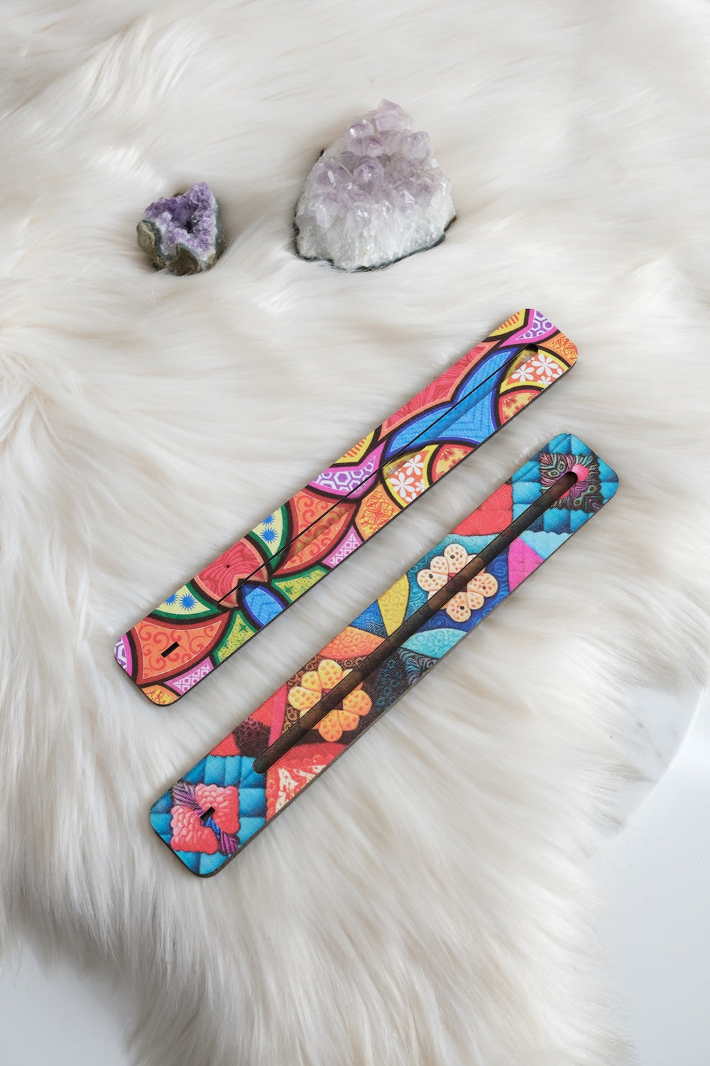 Renkli Desenli Çubuk Tütsülük, yaşam alanınızda arınmış ve dengeli bir atmosfer oluşturmak için tasarlanmış özel bir üründür. Ritüellerde, meditasyon anlarında veya günün yorgunluğunu geride bırakmak istediğiniz zamanlarda rahatlıkla kullanılabilir. Dumanın ve kokunun yumuşak yayılışı bulunduğu ortamda sakinleştirici ve toparlayıcı bir etki yaratır. İster günlük rutininizin bir parçası ister özel niyet çalışmalarınızda eşlikçi olarak değerlendirebilirsiniz.