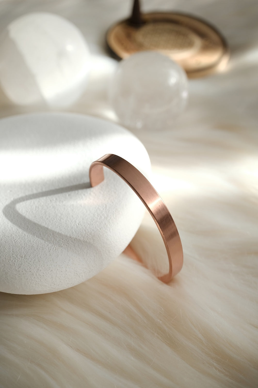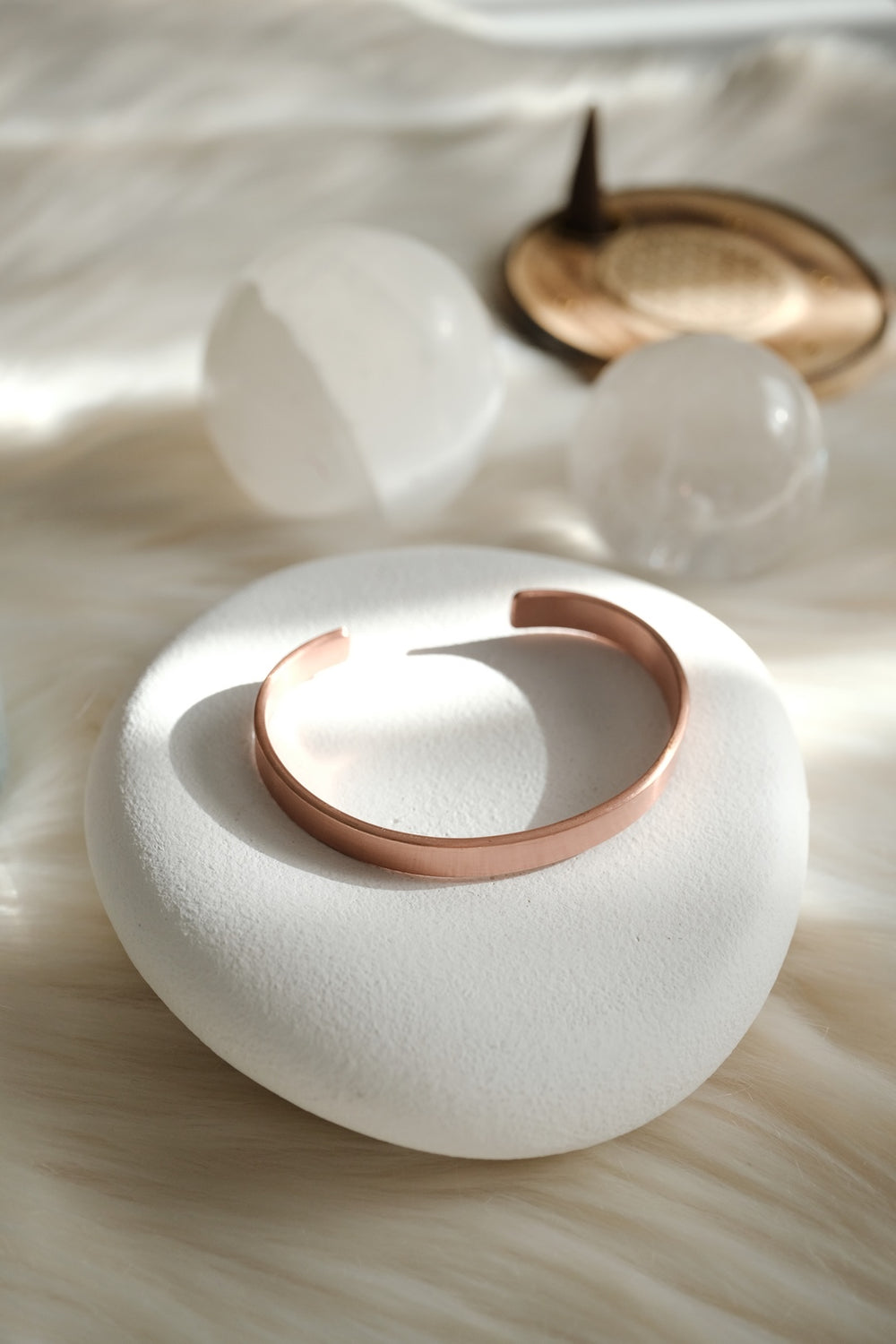 Bu bileklik, yüksek kalitede saf bakır materyalden üretilmiştir. Ayarlanabilir yapısı sayesinde her bileğe kolayca uyum sağlar. Parlak ve pürüzsüz yüzeyi, zamanla kendine has doğal bir patina geliştirerek karakter kazanır. Minimalist ve zamansız tasarımı, onu her türlü kombin için ideal bir tamamlayıcı yapar.