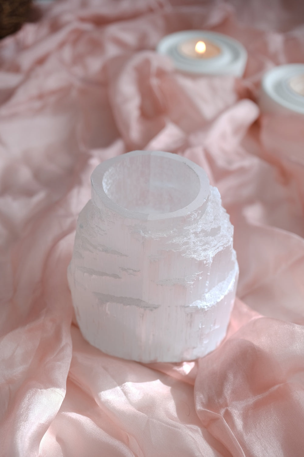Selenit Doğaltaş Mumluk, tamamen doğal selenit taşından elde edilen, her biri benzersiz form ve dokuda üretilmiş özel bir parçadır. Yüzeyindeki doğal parlaklık ve yarı saydam yapı, mum yandığında yumuşak ve yayılı bir ışık efekti oluşturur. Standart tealight (şamdan tipi) mumlarla uyumlu olacak şekilde oyuk kısmı özenle hazırlanmıştır. Renk tonları süt beyazdan hafif opak beyaza kadar değişebilir; bu doğal taşın yapısından kaynaklanan özgün bir özelliktir. Hem modern hem de bohem dekor stilleriyle kolayca uyum sağlayacak sade ve zamansız bir tasarıma sahiptir.
