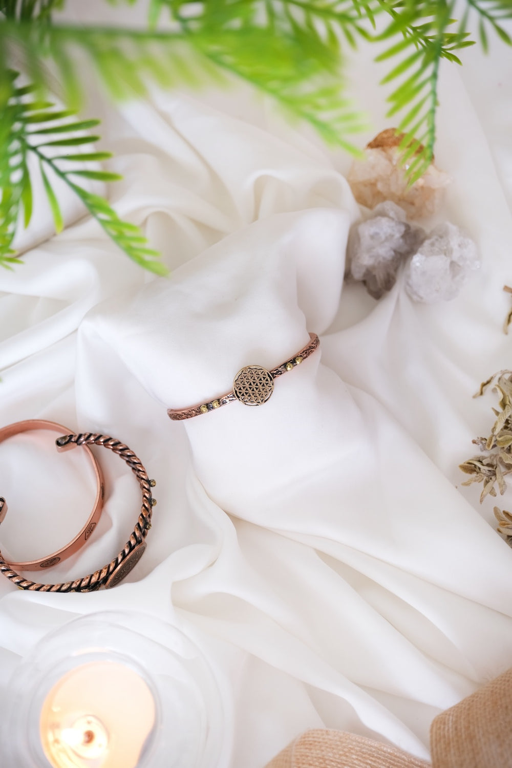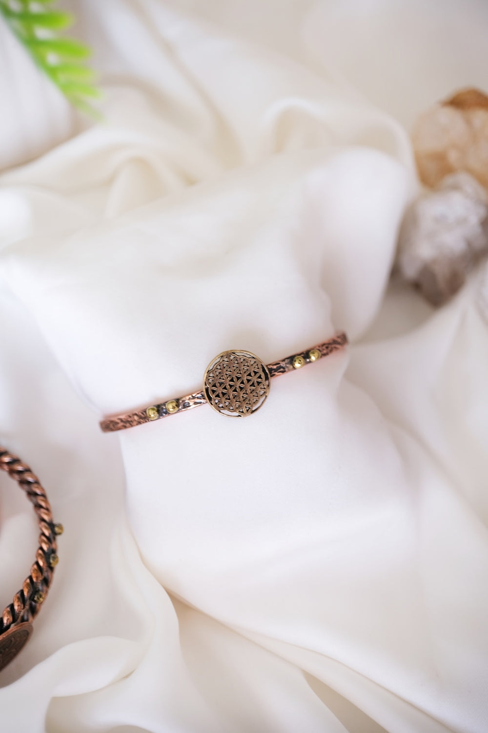 Bu bileklik, yüksek kaliteli ve saf bakır malzeme kullanılarak özenle üretilmiştir. Merkezinde yer alan Yaşam Çiçeği sembolü, detaylı işçiliğiyle dikkat çeker. Ayarlanabilir yapısı sayesinde her bilek ölçüsüne kolayca uyum sağlar ve gün boyu konforlu bir kullanım sunar. Bakırın zamanla kazanacağı doğal patina, bilekliğinize kişisel bir karakter katacaktır.