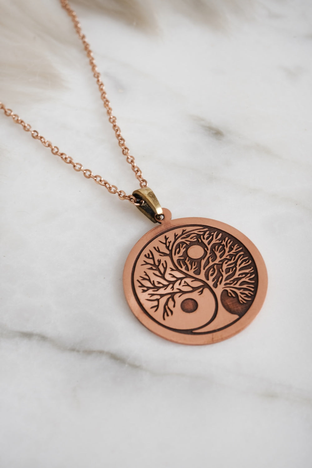 Kolye ucu, evrensel dengeyi temsil eden ikonik Yin Yang sembolü formunda özenle tasarlanmıştır. Malzeme olarak %100 saf bakır kullanılmıştır, bu da ona kendine has sıcak bir renk tonu ve otantik bir doku kazandırır. Ayarlanabilir zinciri sayesinde her kıyafetle uyum sağlar ve kişisel tercihinize göre uzunluğunu kolayca ayarlamanıza olanak tanır. Her bir detay, sade ve anlamlı bir estetik sunmak üzere dikkatle işlenmiştir.